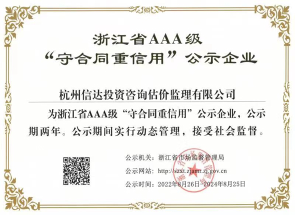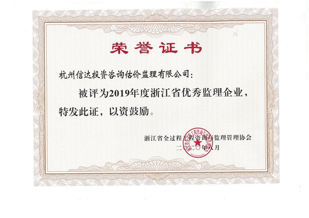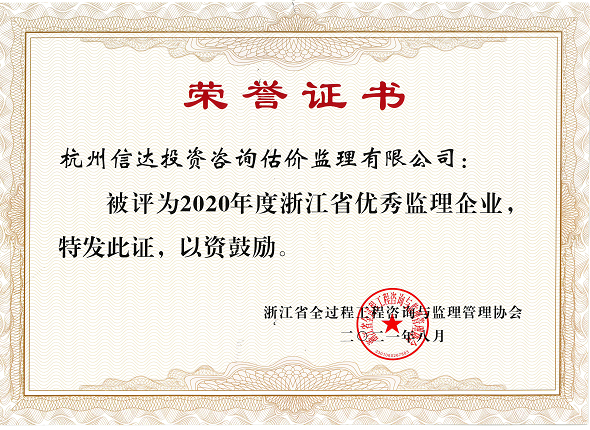 浙江省建設工程造價管理協會“專業知識支撐單位”榮譽證書