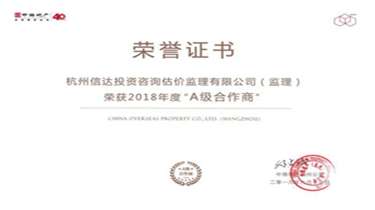 公司榮獲中海地產2018年度A級合作商稱號